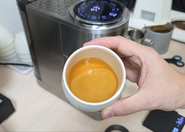 - HiBrew (ручное предсмачивание): Результат лучше - тело плотнее, меньше горечи. Вкус приблизился к Gaggia, но осталась небольшая терпкость и «плоскость». Ощущение, что чего-то не хватает.