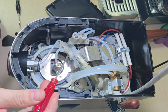 Разборка сложная. Внутри компоновка достаточно плотная. OPV-клапан виден, но доступ к нему затруднен - отрегулировать его сверху невозможно. Для настройки придётся разбирать машину практически полностью.